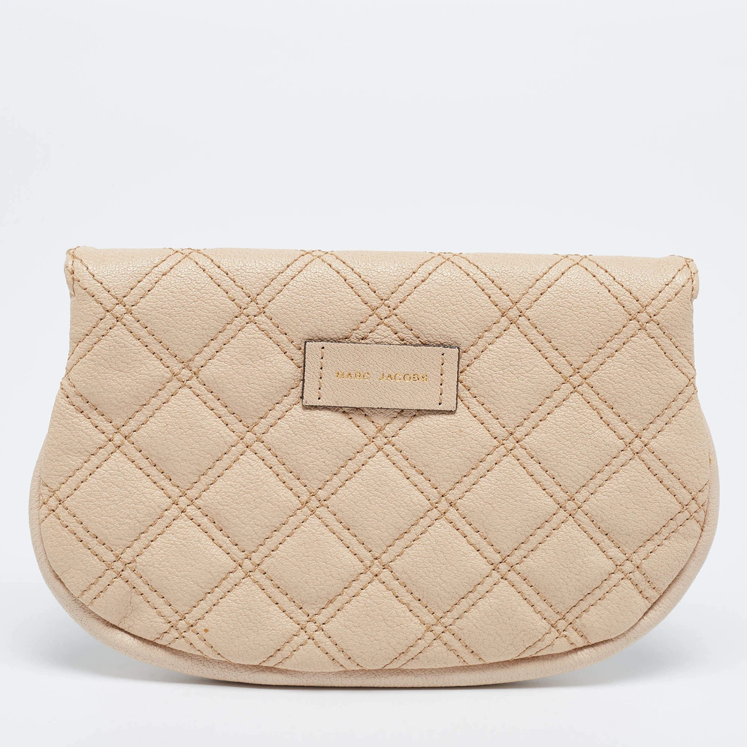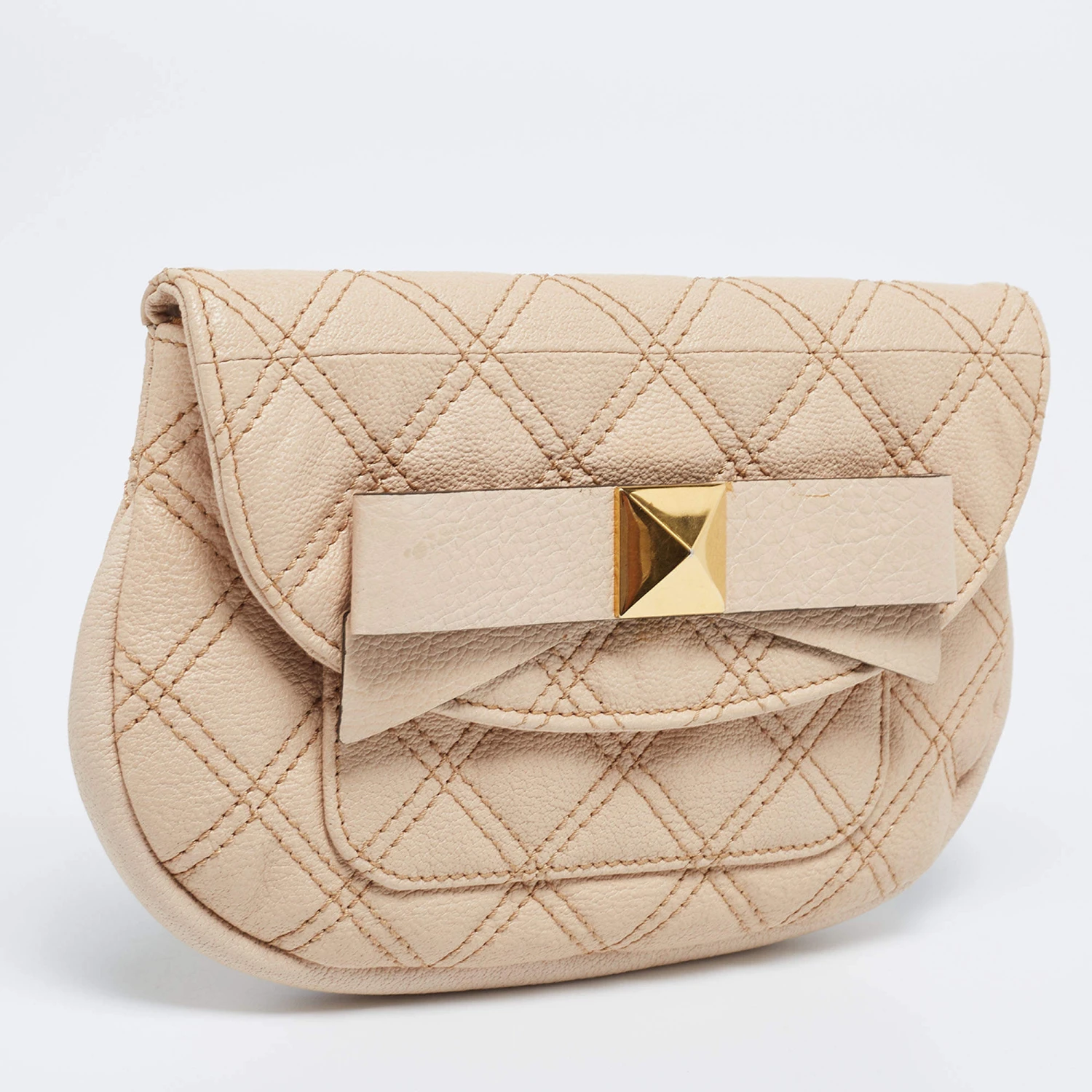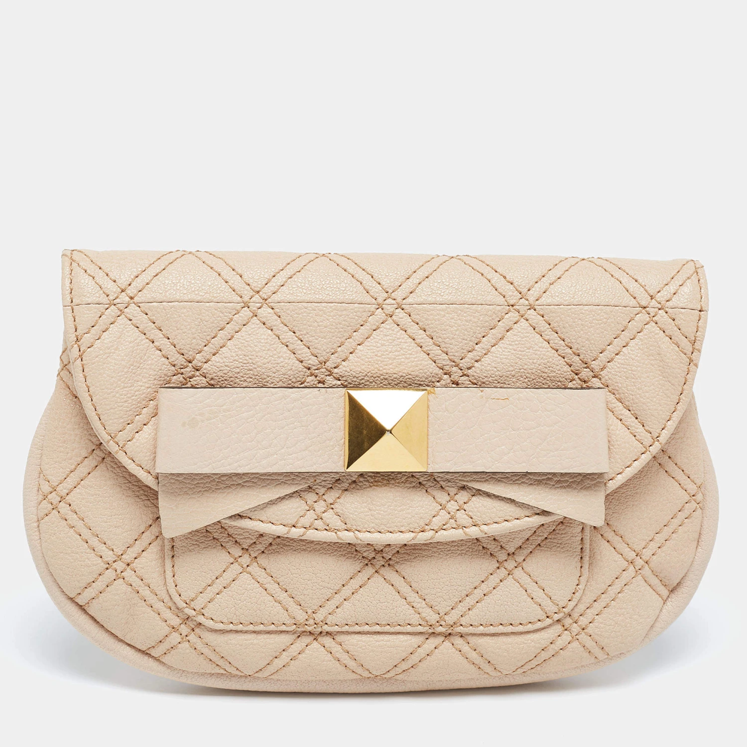 Marc Jacobs Beige Quilted Leather Bow Clutch For Women