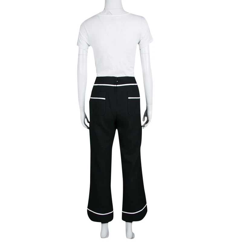 You’ll love to be seen flaunting this pair of pants from Marc Jacobs! Finely tailored from wool at an ankle length and designed in a black shade, this creation has contrast grosgrain trims and a zipper with pockets at the back. You can team it with a cotton top or jacket and bright heels to look amazing.