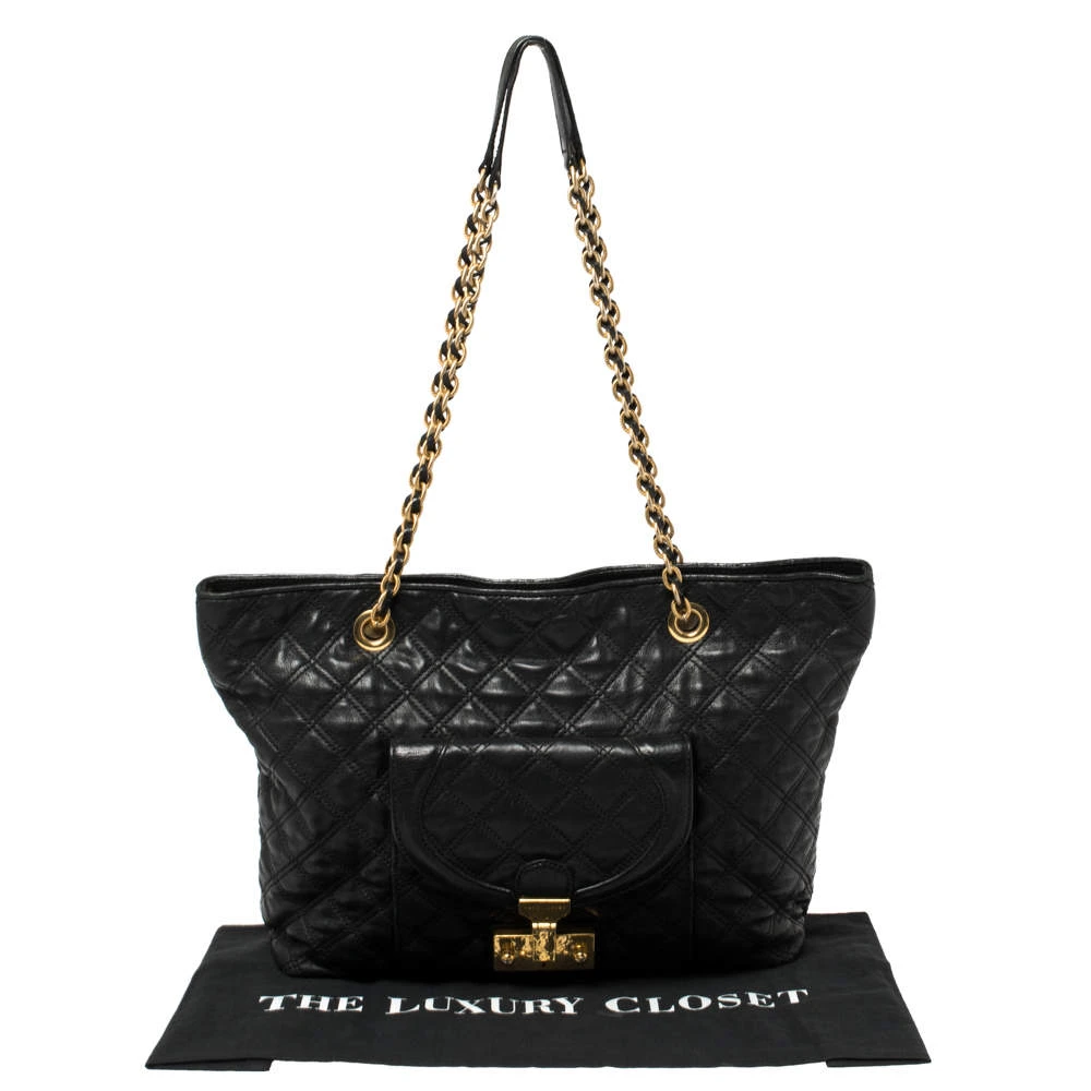 Made for the modern woman, this Marc Jacobs tote is functional and fashionable at once. Crafted from leather, the exterior is detailed with quilt stitching and a front pocket for easy organization. The interior is spaciously lined with canvas for your everyday essentials.