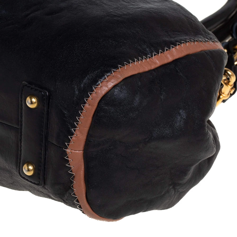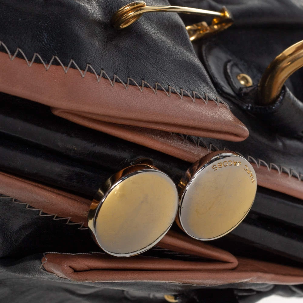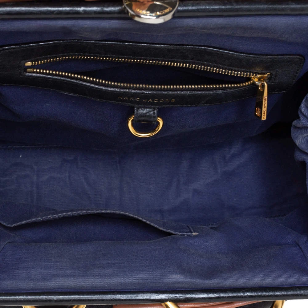 This Marc Jacobs design has a black exterior crafted from leather and enhanced with gold tone hardware. This elegant bag features a kiss-lock top closure that opens to a fabric interior, dual top handles and a removable chain that converts this piece between shoulder and hand styles easily. Swing this beauty wherever you go and make heads turn!