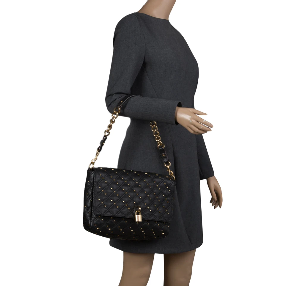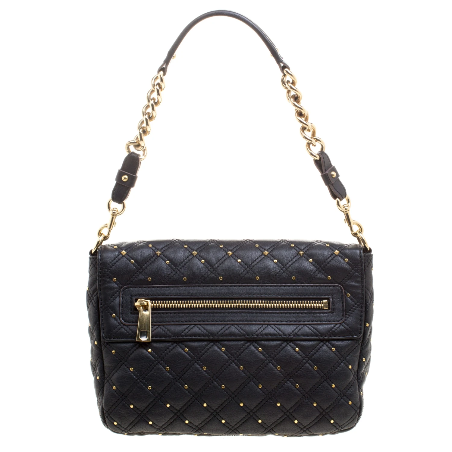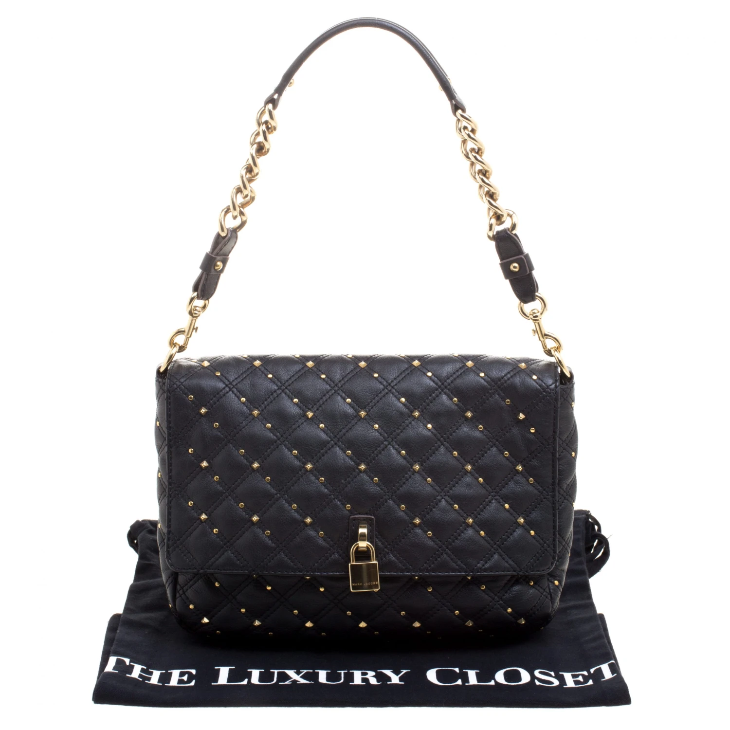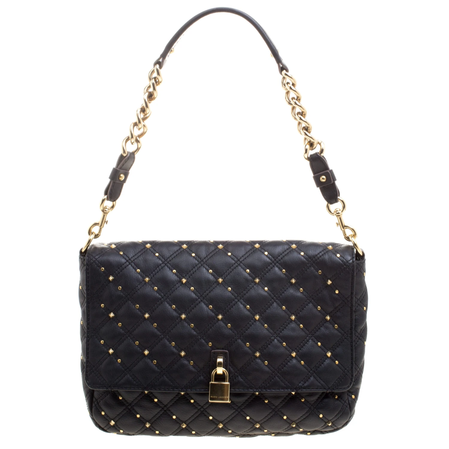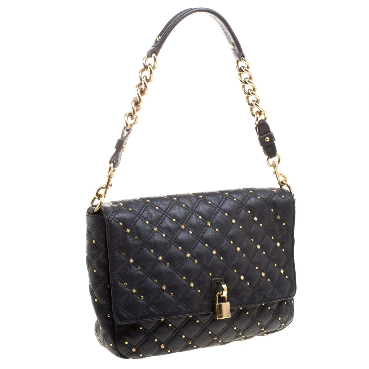 Every woman needs a bag that is pretty and functional, just like this Stardust Beat shoulder bag from Marc Jacobs. Crafted from leather, it features a quilted pattern with gold tone stud hardware on the exterior and a padlock. It has a detachable chain link strap with leather shoulder rest and a spacious canvas lined interior. This is definitely one handy bag that deserves to be yours.