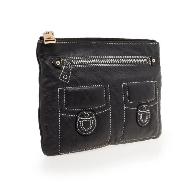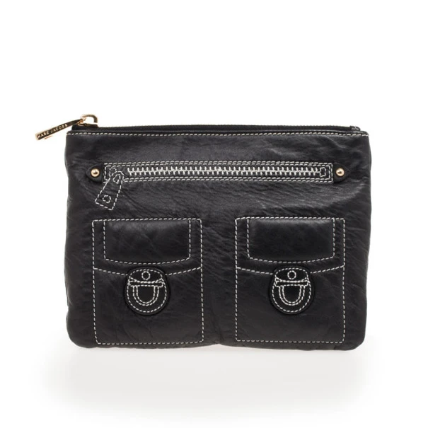 Marc Jacobs Black Leather Two Pocket Clutch For Women
