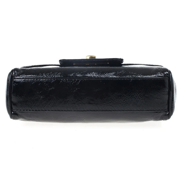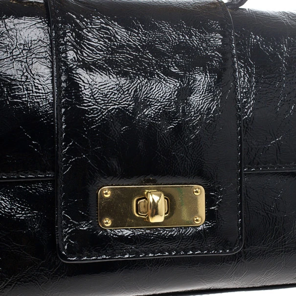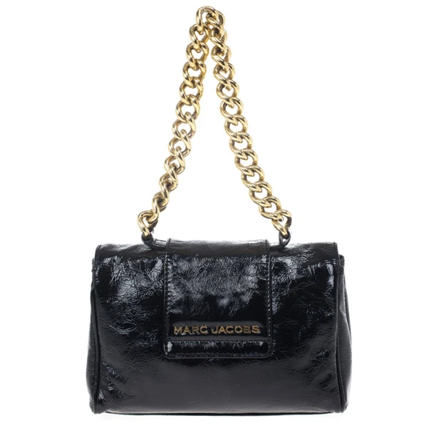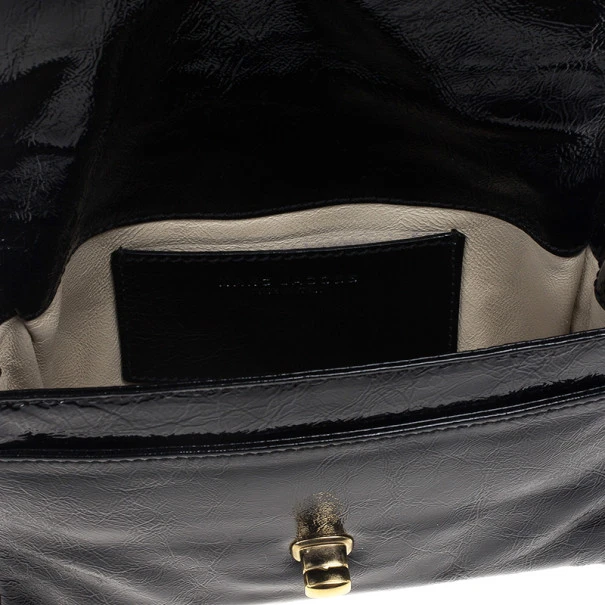 This ultra cute Marc Jacobs Black Patent Ursula Pochette is made from patent crackled black leather. It features a twist lock flap closure and a single chain link handle. The interior is lined with fabric and houses a patch pocket and a Marc Jacobs label. Original Retail Price:US $675
