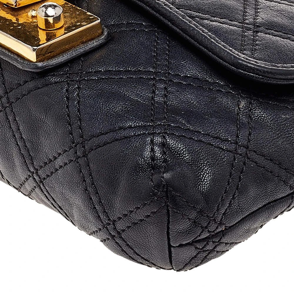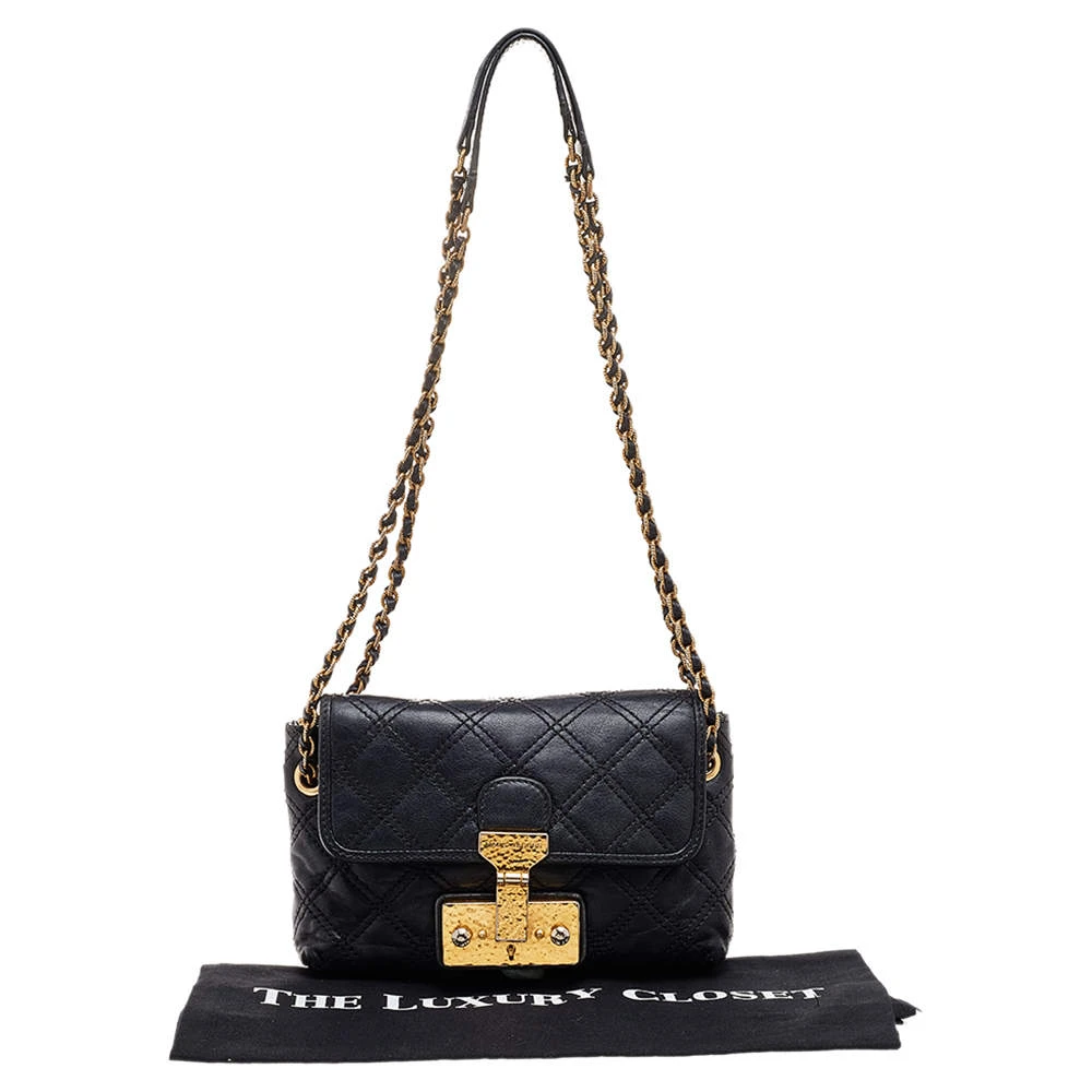 What’s not to love about this lovely Marc Jacobs bag? Finely crafted from leather in a classy black shade, it features a quilted pattern on the exterior and the front flap is detailed with an engraved gold-tone push lock. The interior is spacious enough for you to carry your daily essentials and the bag is complete with a chain-link shoulder strap.