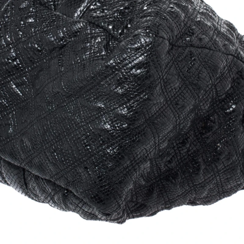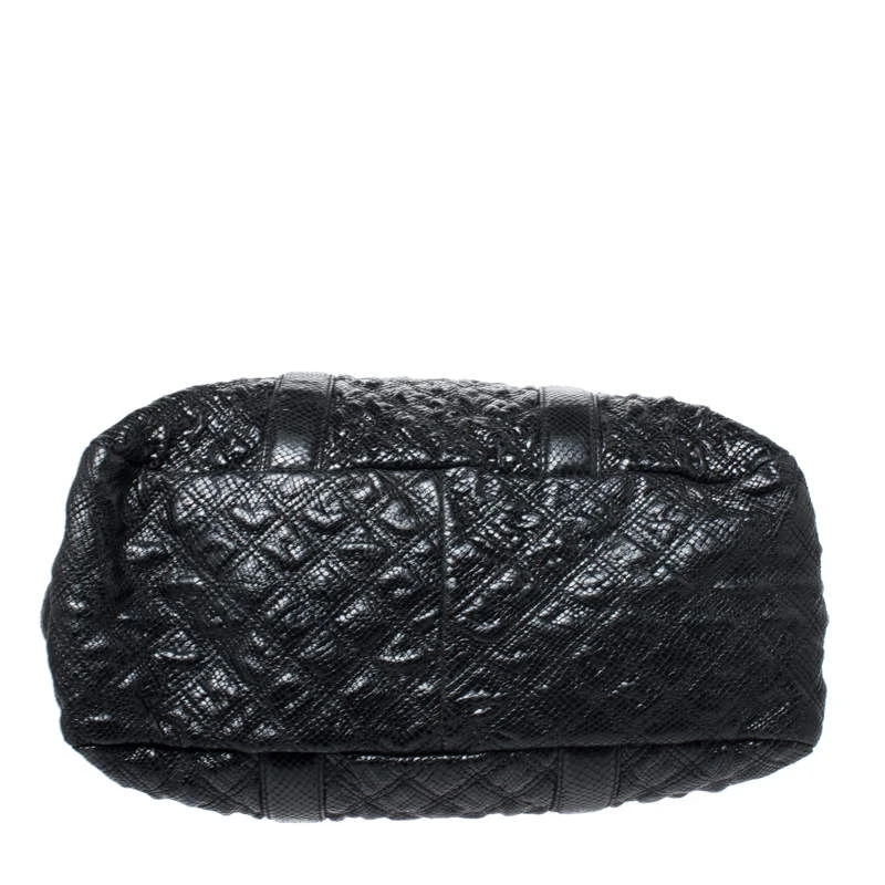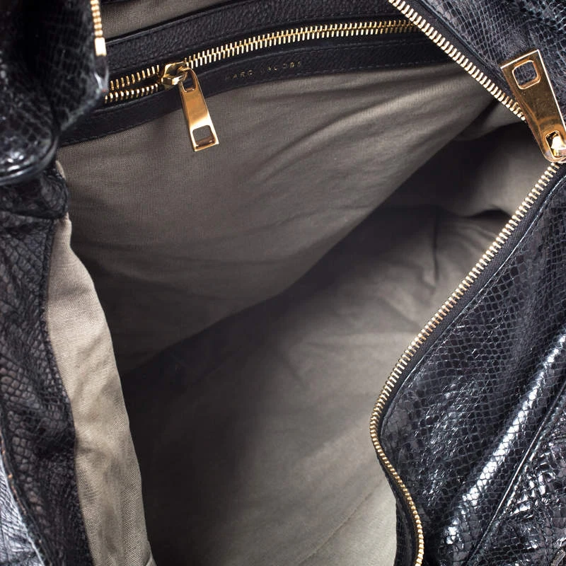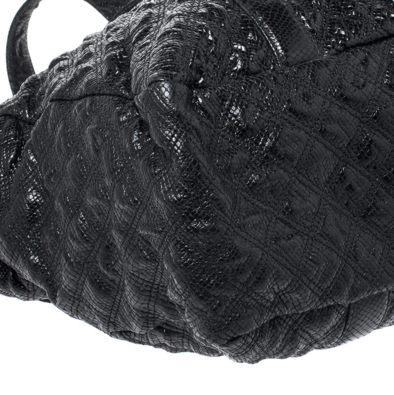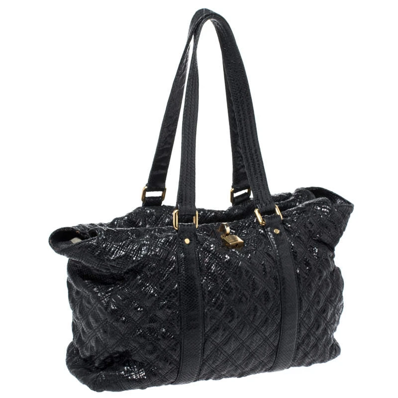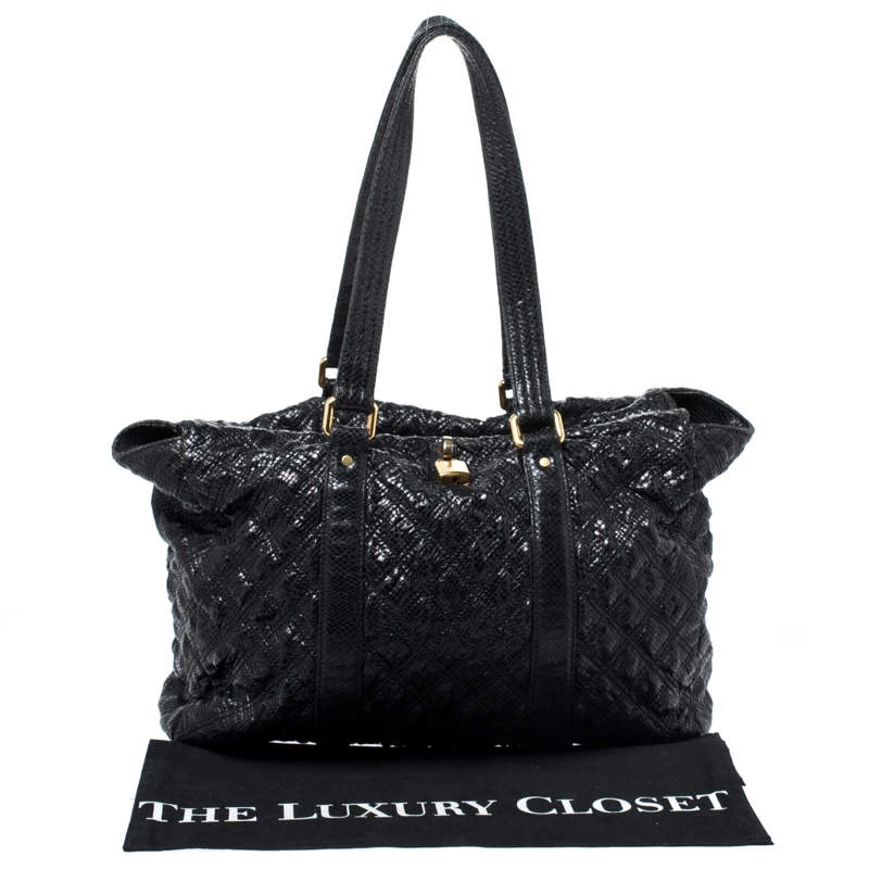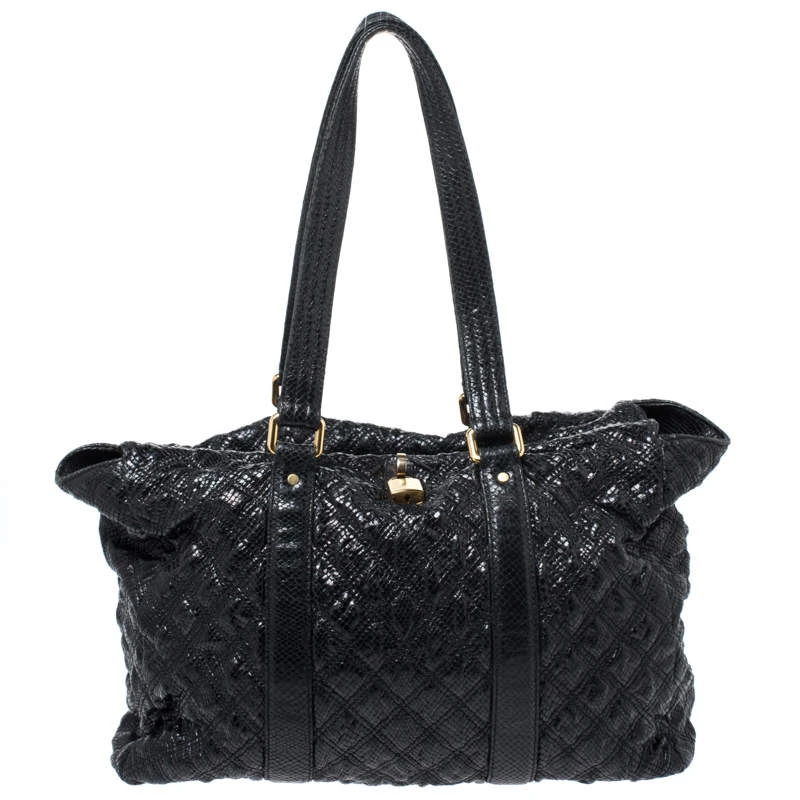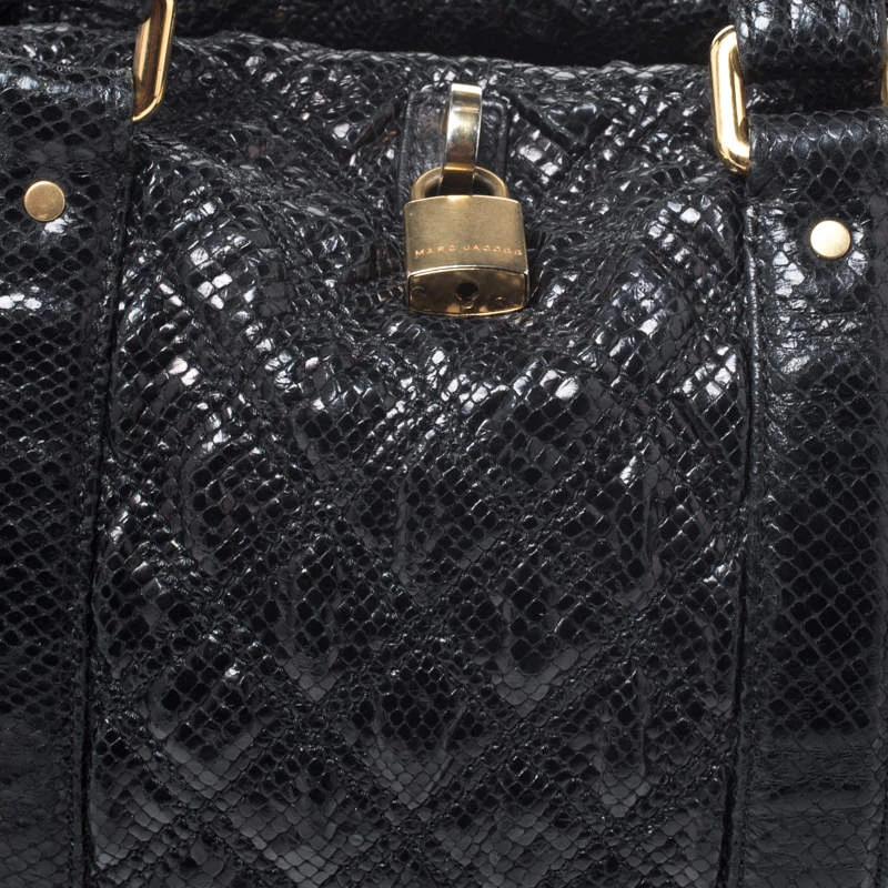 Undisputedly stylish and brilliantly designed, this black tote is from Marc Jacobs. Crafted from snakeskin-embossed leather, the tote features a quilted exterior and a padlock on the front. The canvas lined interior is secured by a zip closure and the bag is held by dual handles.