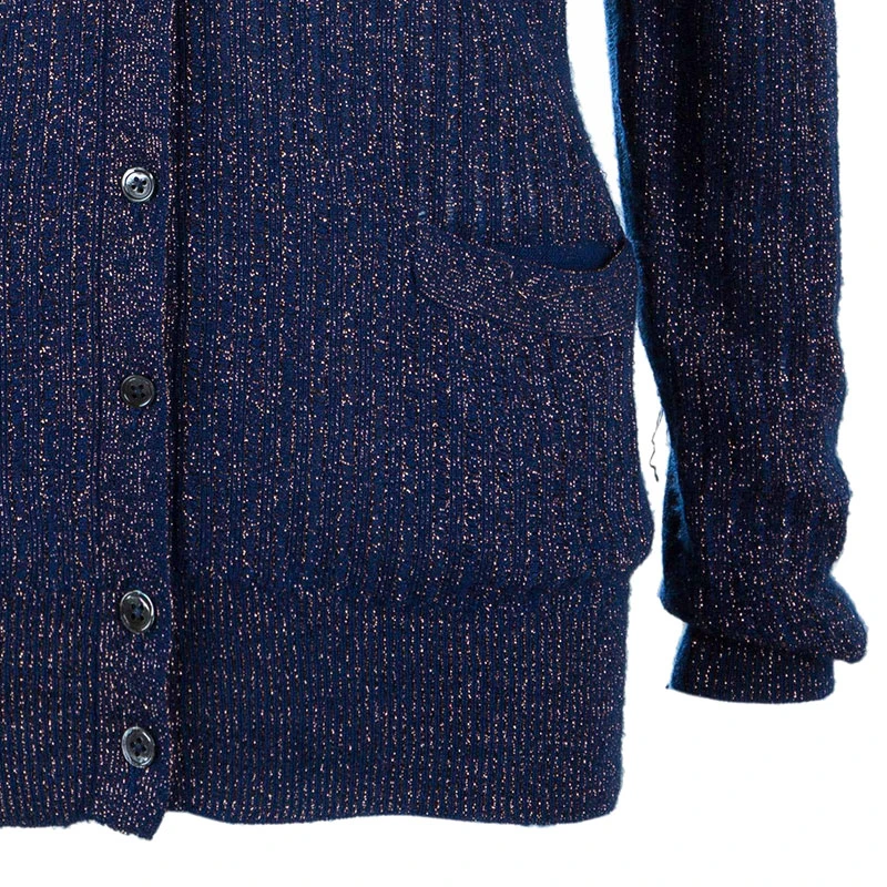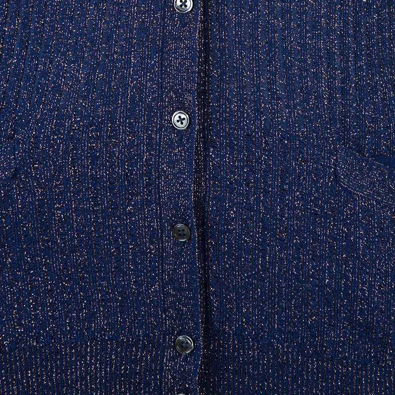 Wear this exclusive cardigan by Marc Jacobs for a sophisticated and a warm snug look. Crafted from cotton and polyester blend, it features front button closure, long sleeves, V-neckline and front patch pockets. Pair it with fitted denims and pointed-toe heels for a cool yet a warm look.