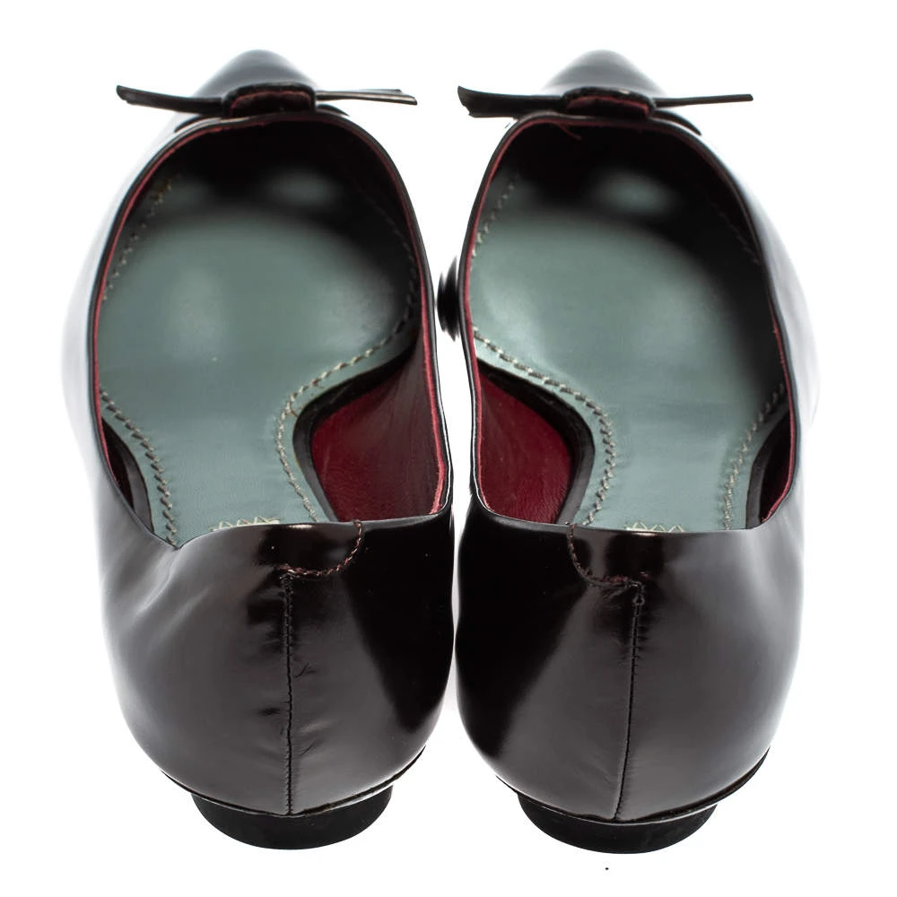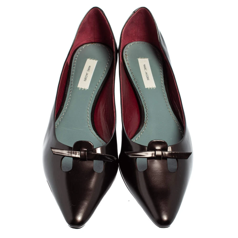Lend the luxury appeal to your ensembles with these chic ballet flats from Marc Jacobs. Crafted from dark burgundy leather and designed with pointed toes and bow details on the vamps, they come equipped with comfortable insoles and tough outsoles.