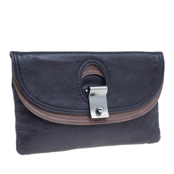 Supporting a contemporary style, this clutch by Marc Jacobs can be a perfect choice for an evening. The exterior is made from lambskin leather and comprises of a flap with trim in contrasting pink. It features an eyelet design on the front and a silver-tone hardware flip lock closure with brand detailing. The fabric-lined interior carries a single patch pocket.