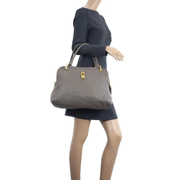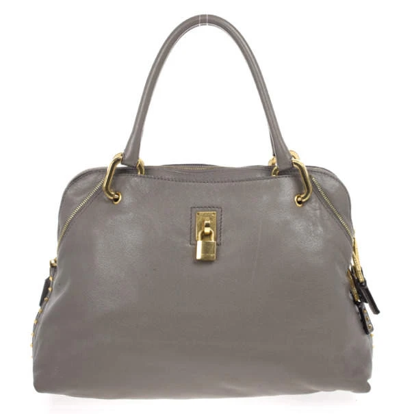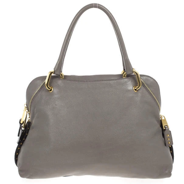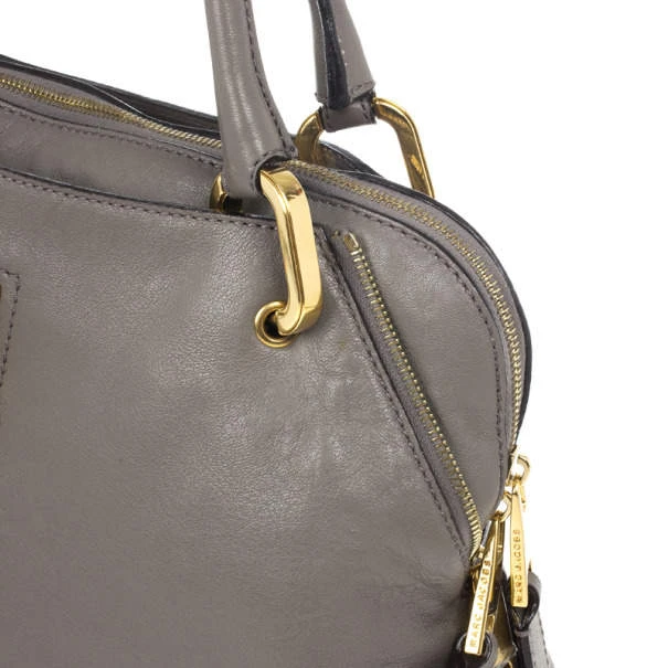 Pair this versatile Marc Jacobs Grey Paradise Little Janice Bag with all of your outfits. It is crafted from grey leather and features a front Marc Jacobs engraved lock, rolled double handles, gold-tone hardware and a studded trim. The interior is lined with canvas and has one zip pocket and one patch pocket. The exterior comes with a patch pocket.Original Retail Price:US $1,058