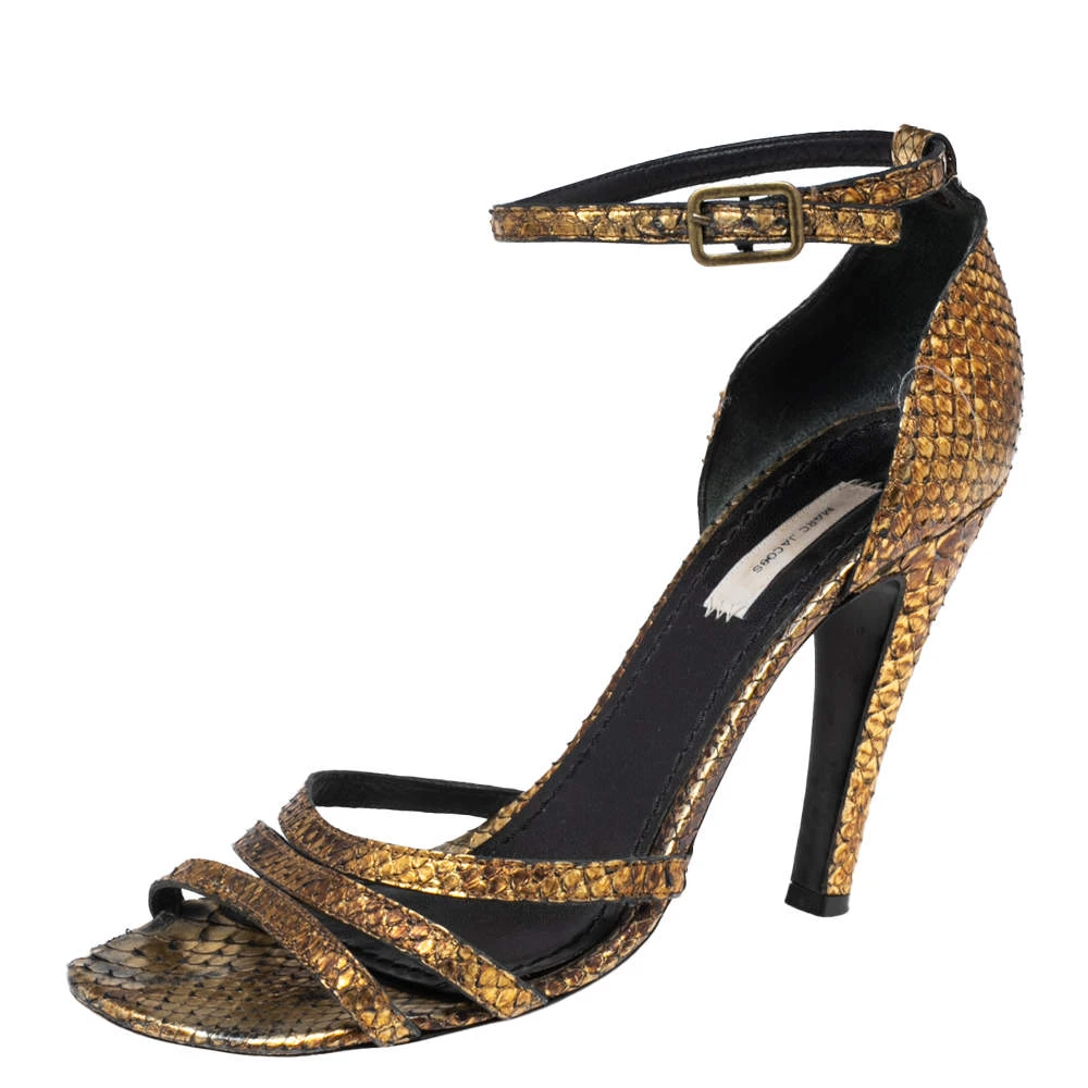 These sandals from Marc Jacobs will lend a stylish and glamorous edge to your feet. This beautiful pair is made of python leather and added with open toes, buckled ankle closure, and 11 cm heels.