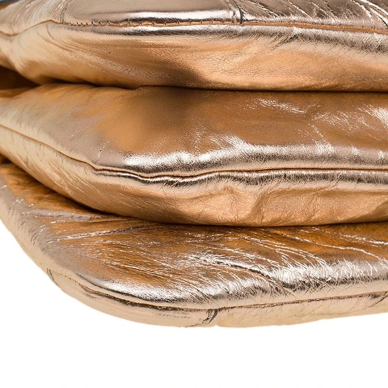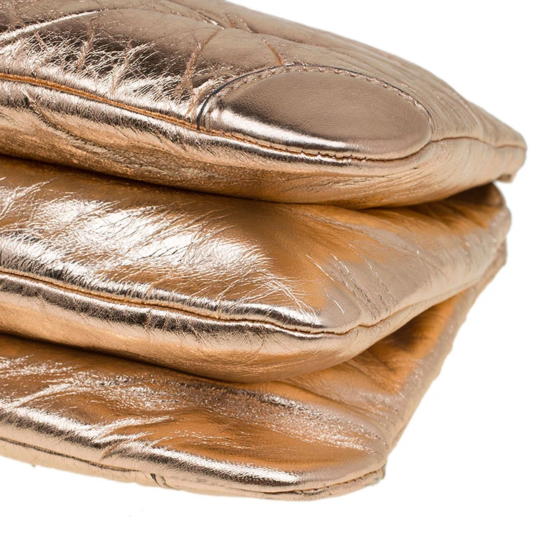 This metallic rose shoulder bag from Marc Jacobs is a stellar way to showcase the opulent look. Crafted in metallic rose quilted leather, it features a signature dimpled clasp on the front to secure the fastening strap, three pocket sections and gold-tone chain link handles.