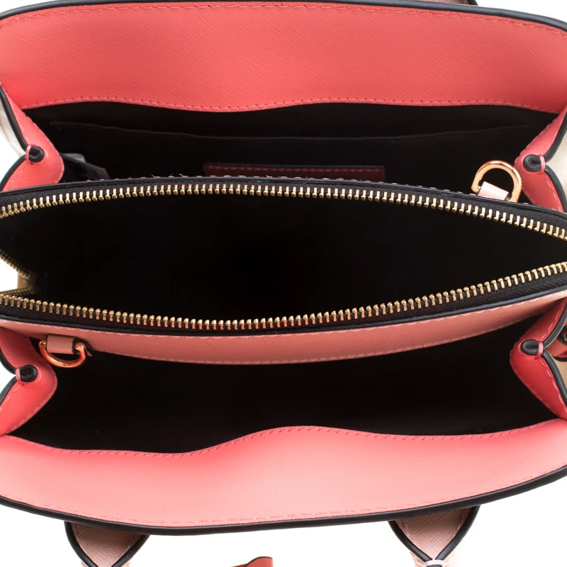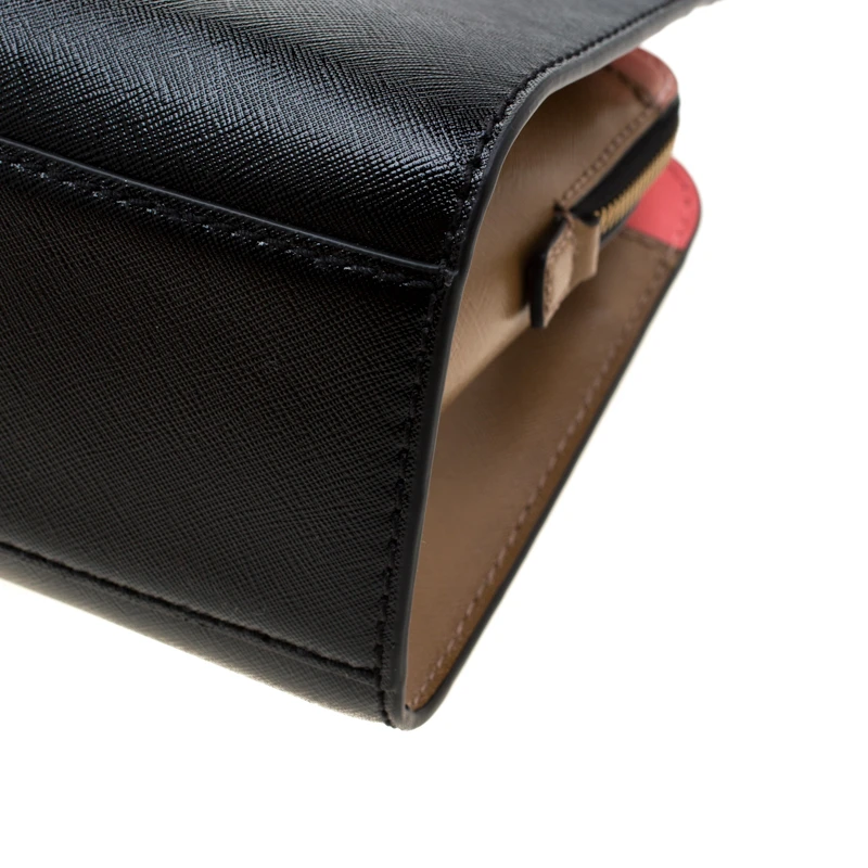 This chic tote by Marc Jacobs is a purchase you will always cherish. Crafted with leather, this Big Shot bag has fabric-lined interior that offers wide space along with a zipper compartment and a slip pocket for keeping your stuff organized. With two top handles, a padlock, clochette and a detachable shoulder strap, this colorful bag is complete.