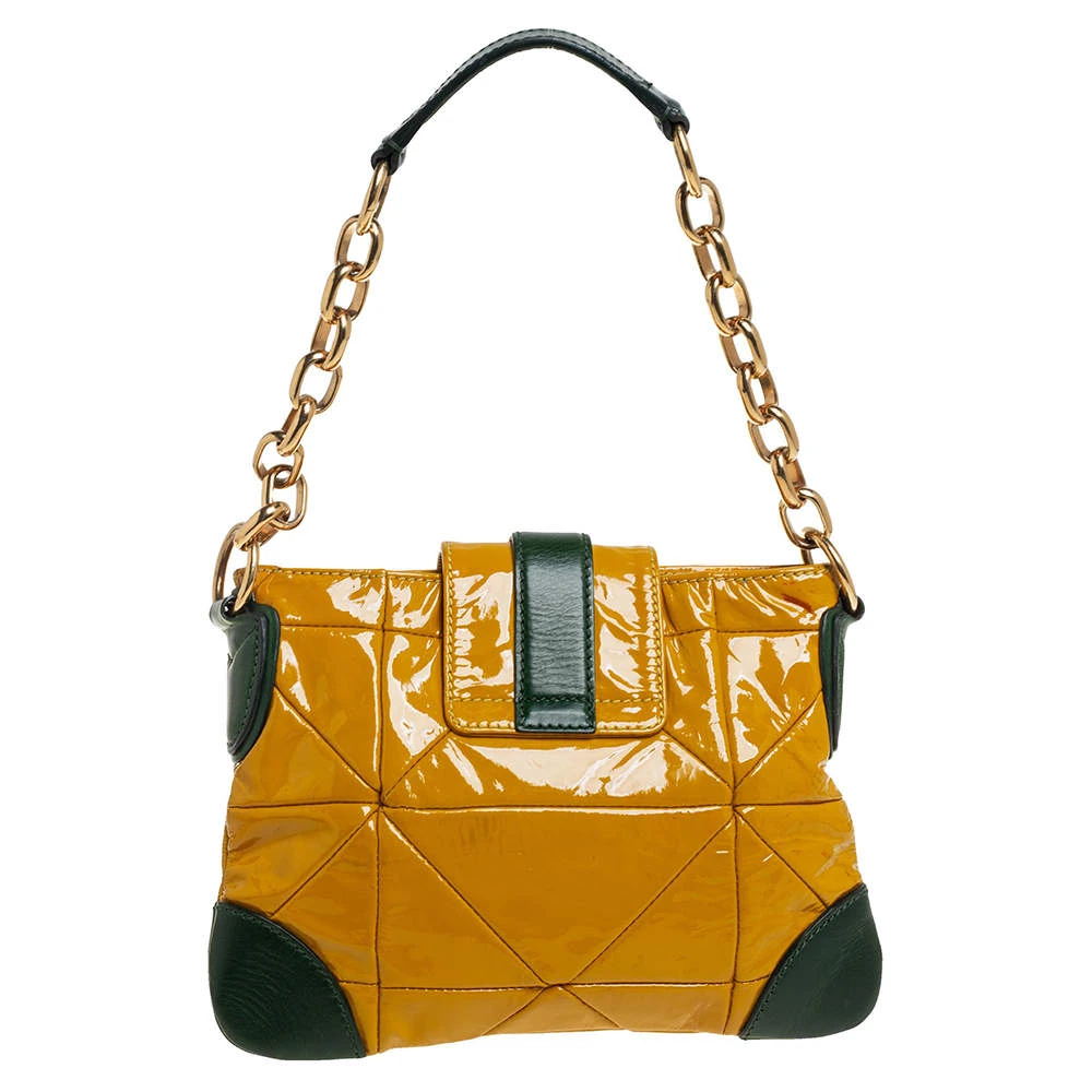 Coming from the house of Marc Jacobs, this trendy handbag ensures versatility and style. Presenting a patent leather handbag which is an absolute mixture of fashion and utility. The bag opens up to showcase a fabric-lined interior. This yellow bag displays your fashion-forward choice when it comes to accessories.