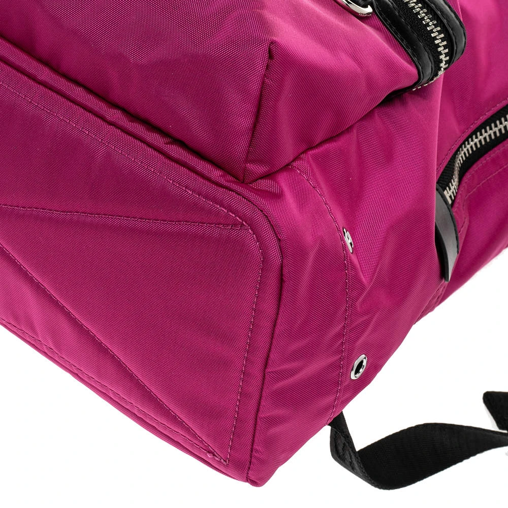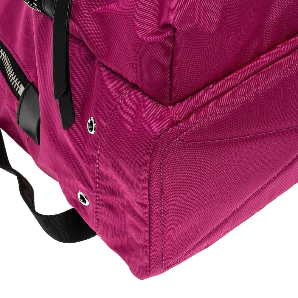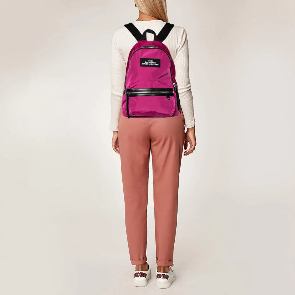 This smart backpack from Marc Jacobs is very trendy. It has a functional design and a top zip fastening that opens to a compartment with enough space to fit your essentials. The pink & black nylon and leather bag comes with a logo-detailed front, a zip pocket on the front, a top handle, and shoulder straps. Complete all your chic ensembles with this luxurious bag.