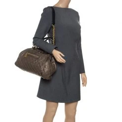 Marc Jacobs Metallic Brown Quilted Leather Stam Satchel For Women