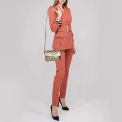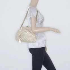 Marc Jacobs Metallic Gold Quilted Leather Bow Shoulder Bag For Women