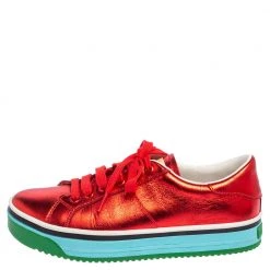 Marc Jacobs Metallic Red Leather Low Top Sneakers Size 37 For Women