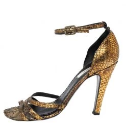 Marc Jacobs Metallic Gold Python Ankle Strap Sandals Size 39 For Women