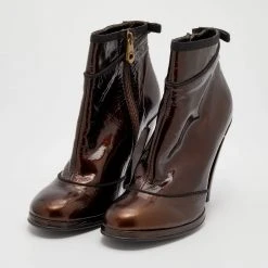 Marc Jacobs Metallic Bronze Patent Leather Ankle Length Boots Size 40.5 For Women