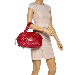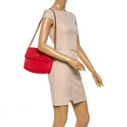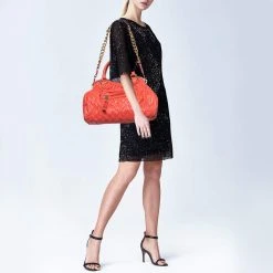 Marc Jacobs Red Sequins Embellished Canvas And Suede Frog Frame Shoulder Bag For Women