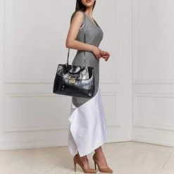 Marc Jacobs Black/Silver Ombre Leather Top Handle Bag For Women