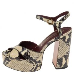 Marc Jacobs Black/Beige Python Embossed Leather Criss Crss Platform Ankle Strap Size 36 For Women